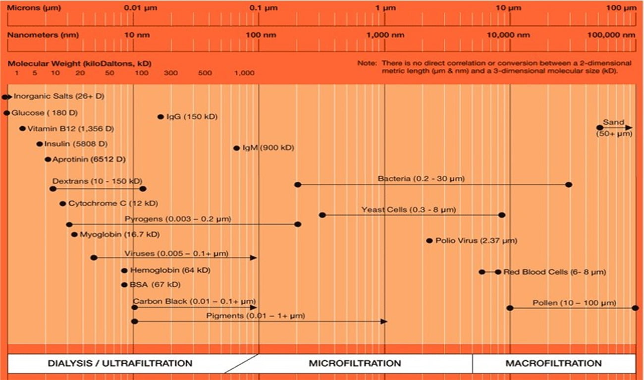 500, 750kD, 0.05, 0.1, 0.2, 0.65µm |