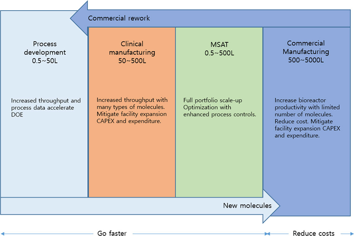 require smaller bioreactors and consume less suite time. Increase throughput, productivity, and capacity in both clinical and commercial manufacturing.